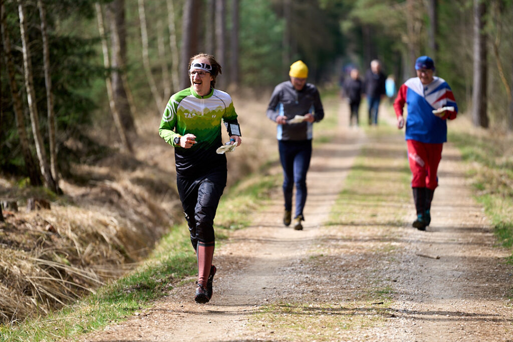 Dost vzpomínání. V sobotu 21.3.26 jsme se všichni sešli na shromaždišti v kempu u Stříbrného rybníka. Z více než tisícovky závodníků bylo 38 jilemnických. Počasí se navzdory nepříznivé předpovědi po nočním dešti vylepšilo. Svítilo slunce a udělalo se docela teplo. Naše kategorie měla 21 závodníků ve startovním intervalu po pěti minutách. Já šel na start až v druhé půli startovního pole před půl dvanáctou. Jirka vybíhal 35 minut přede mnou, Pepa zase 25 minut za mnou. Nějaká spolupráce na trati nepřipadala v úvahu.